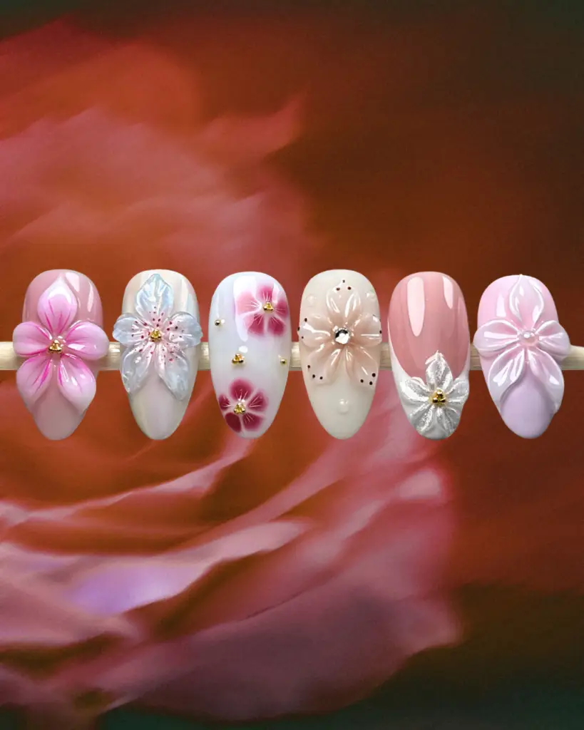 - Gel polish o acrílico de colores (según tu técnica preferida)